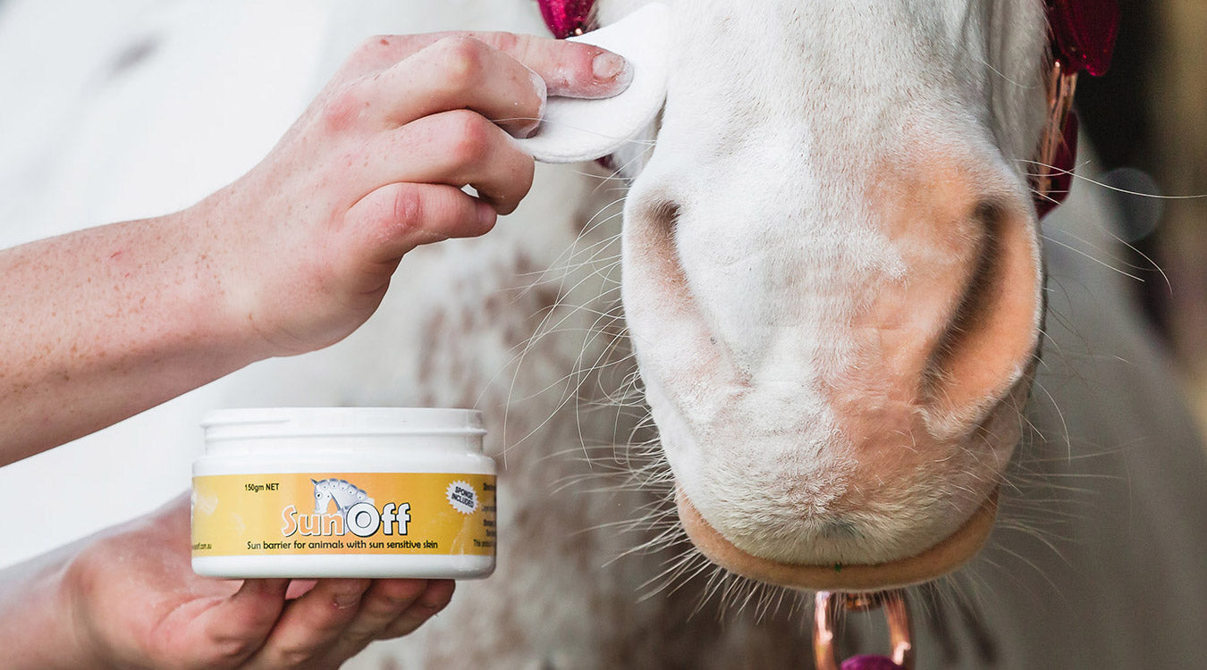 The easiest way to protect your horse from the harsh Australian sun, this summer. SunOff is Australia's best protection for horses' white noses.