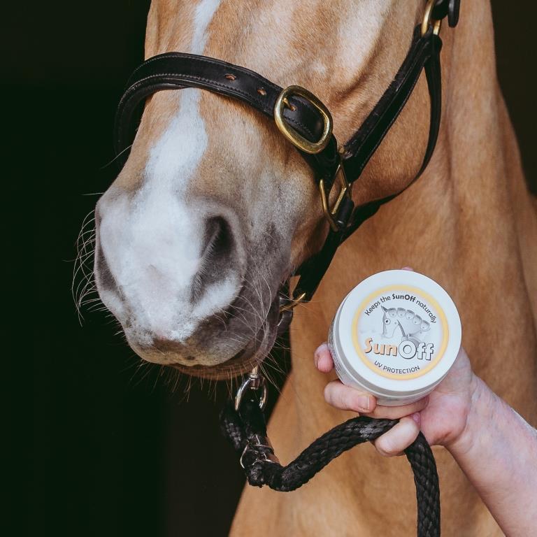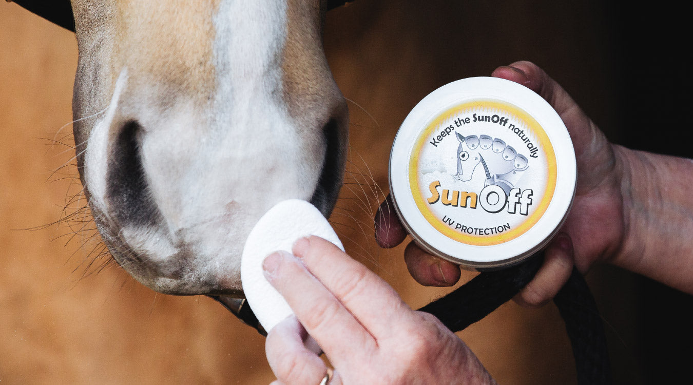 SunOff, the ultimate UV shield for your horse's delicate nose - naturally.